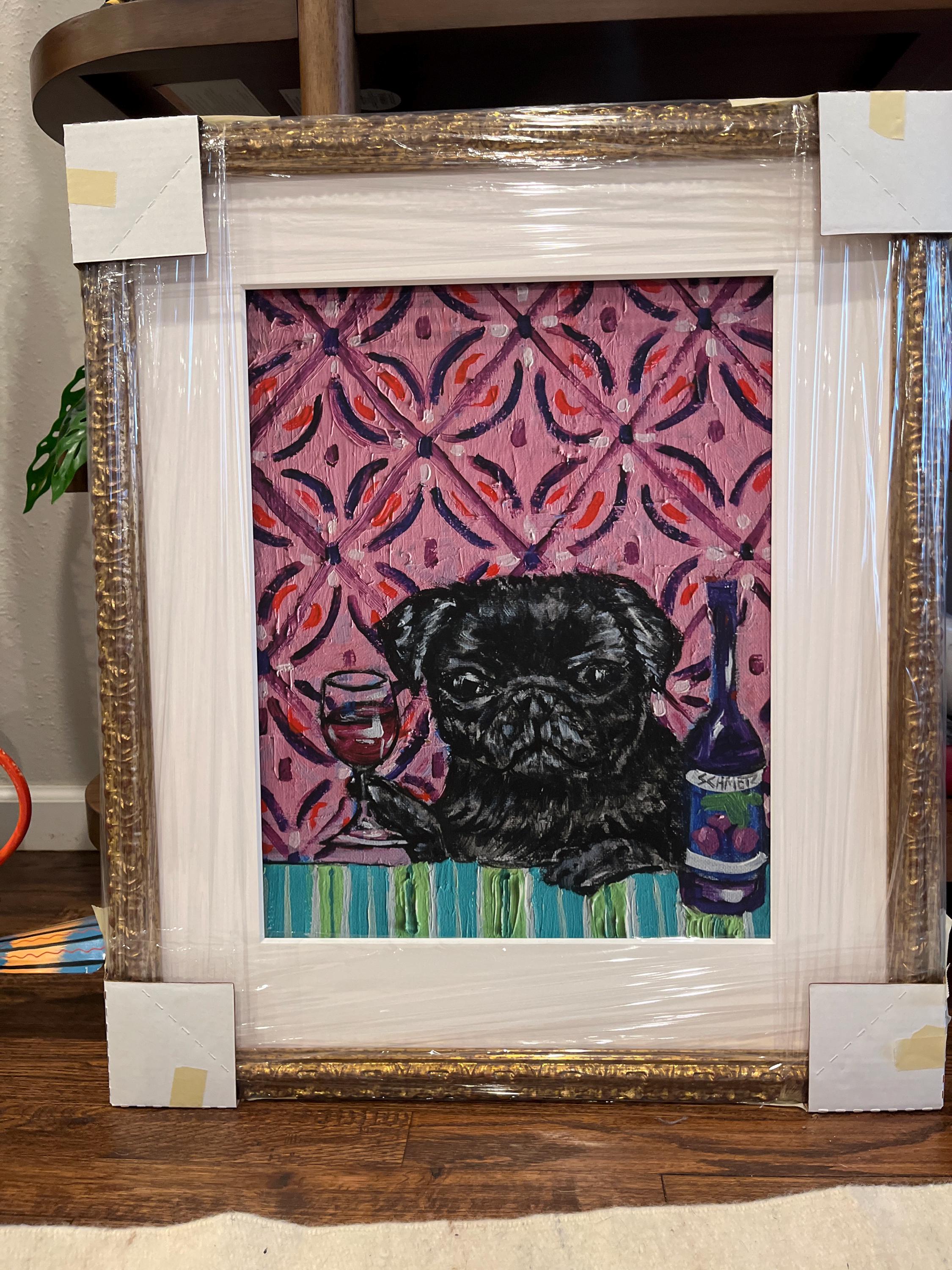 This print is adorable. I bought it in memory of our late black pug, Charlotte. The pig just has such an expressive sassy attitude I love it. It looks like our girl is sipping sangria in one of our favorite cafes in Mallorca. I loved the print so much I had it custom framed.